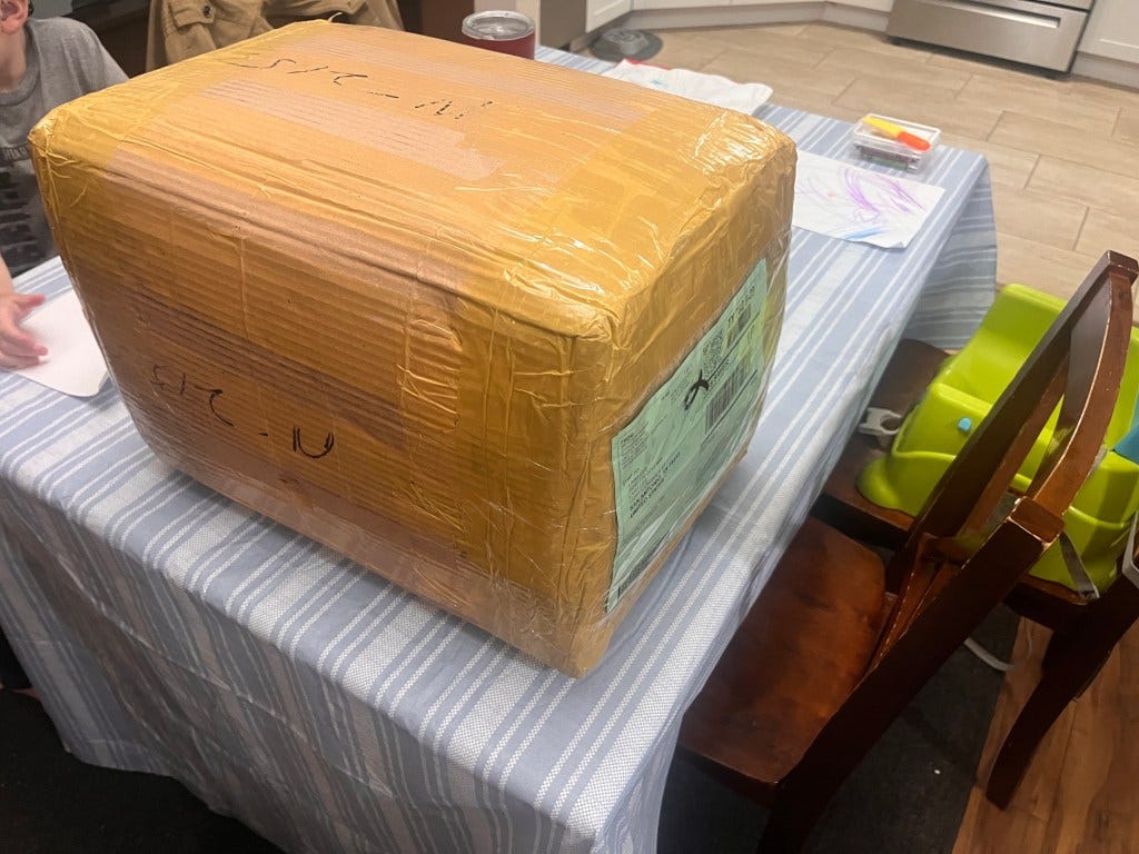 The massive amount of gear I ordered somehow all shrunk down to fit inside this single suitcase-sized box like something out of a Jetsons cartoon. Once I hacksawed through the layers of tape and cardboard enough to endure a nuclear explosion, the quality of the pieces was fantastic!