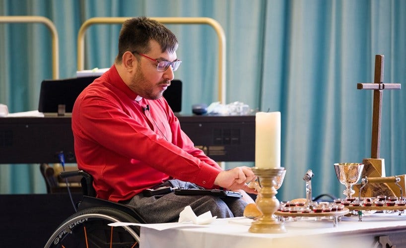 4) Imagine your service through the eyes of those with the most common disabilities - How would a person in a wheelchair get into your building, see the service, partake communion? What about a person who can't see well? What about those with hearing aids or deaf? How about intellectual disabilities? With a little imagination and small tweaks, your service can become much more comfortable to attend. If a person with a disability is able to go to Walmart or McDonald's, they should be able to participate in church too.